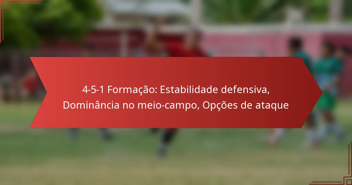 A formação de futebol 4-5-1 é uma configuração tática que apresenta quatro defesas, cinco médios e um avançado. Esta formação enfatiza o controlo do meio-campo e a estabilidade defensiva, permitindo transições rápidas para o ataque.